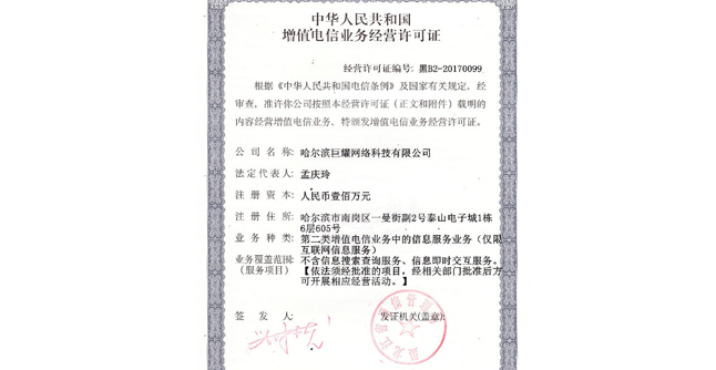 | 哈爾濱巨耀網絡科技有限公司·版權所有 | 地址:哈爾濱市南崗區(qū)西大直街118號哈特大廈17層 |